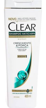 Shampoo Clear Crescimento e Força 400ml 917103 Shampoo para cabelo frágil e couro cabeludo enfraquecido. A tecnologia Power Force, fortalece o couro cabeludo e deixa os fios mais resistentes, proporcionando um crescimento saudável e contínuo. Obtenha menos quebra e pontas duplas através do shampoo sem agentes condicionantes. O Nutrium 10 é uma tecnologia que atua profundamente. Esta fórmula avançada age nas 3 camadas da epiderme, combatendo a caspa desde a raiz1. Com vitaminas e hidratantes, nutre o couro cabeludo e repara as fibras, deixando os cabelos saudáveis e macios. A camada superior do couro cabeludo serve como um escudo contra o ressecamento e os fatores ambientais que contribuem para a caspa. Para deixá-lo mais saudável e protegido, a linha CLEAR contém o Nutrium 10, que atua profundamente nas 3 camadas da epiderme. Desfile cabelos saudáveis, brilhosos e deslumbrantes através do Shampoo Clear Crescimento e Força.